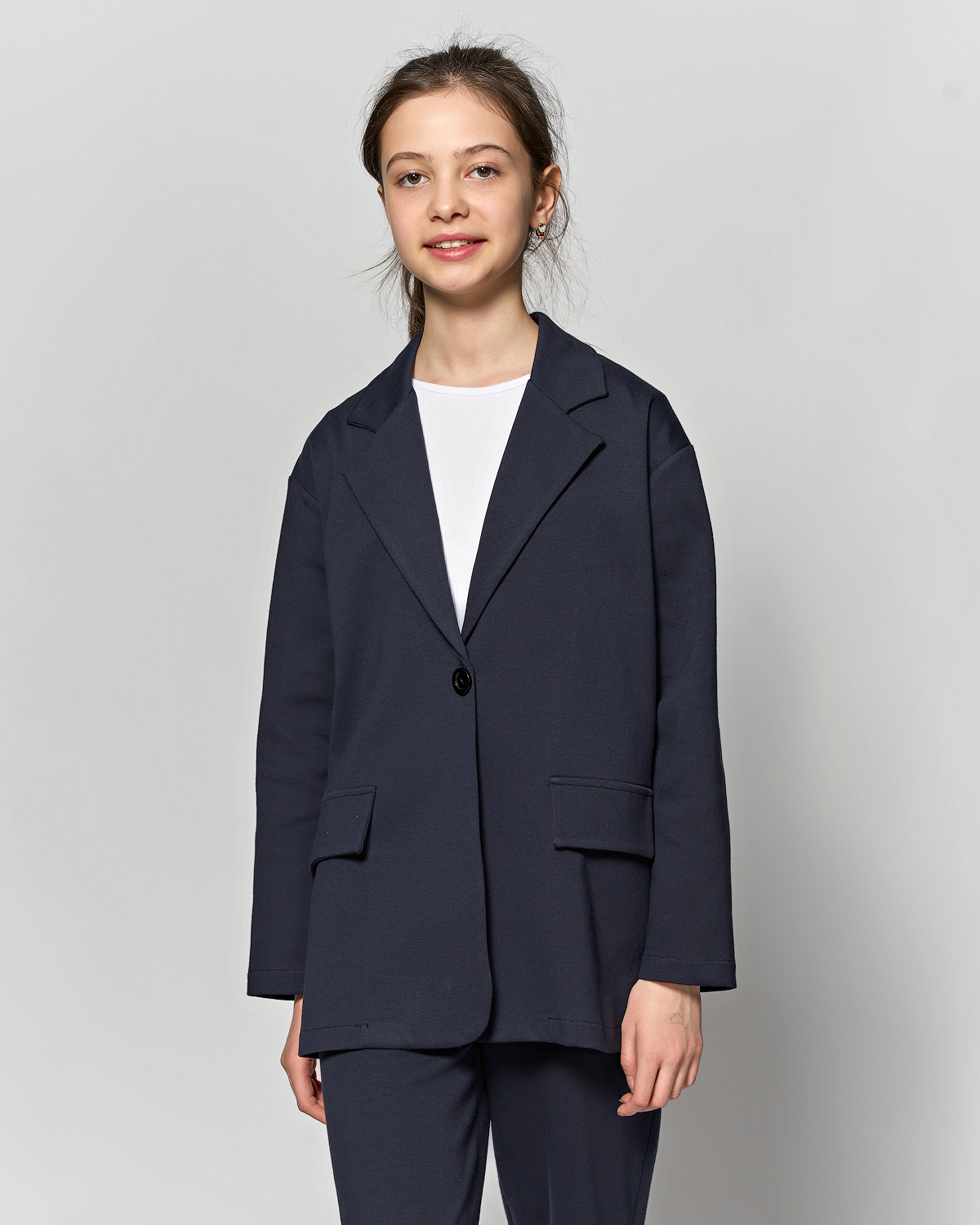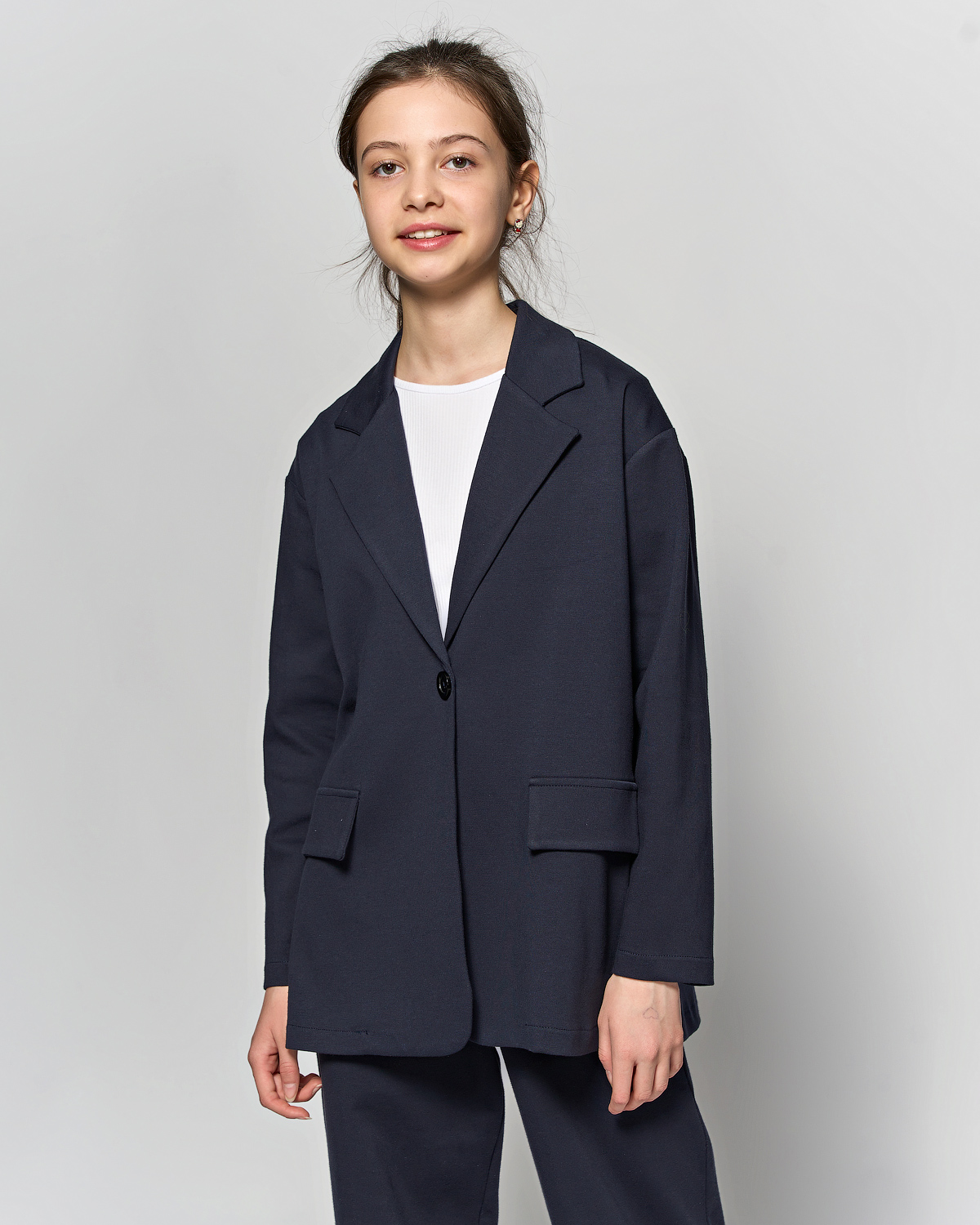 Трикотажный пиджак dmb оптом умеренного объема. Он может быть не только для школы, но и повседневной одеждой. Хорошо сочетается с любой одеждой.