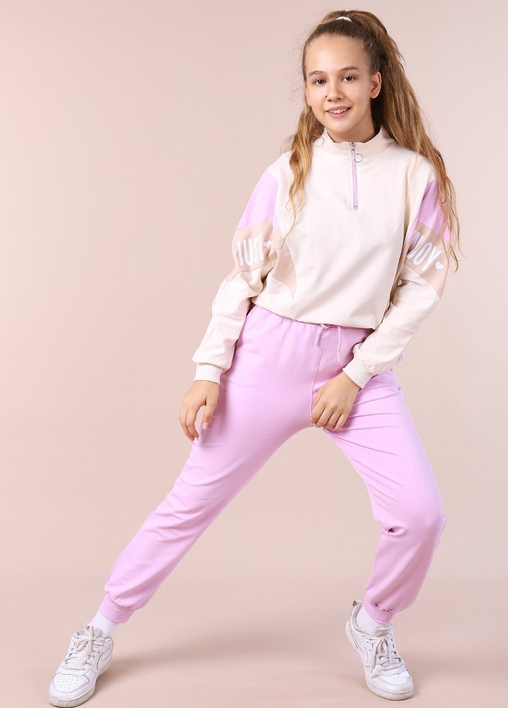Стильный костюм Smile для девочки оптом. Удобный, приятный на ощупь, дышащий натуральный хлопок с добавлением эластана и нежный цвет. Костюм для спорта и прогулок на свежем воздухе не сковывает движений, комфортный и приятный к телу. Комплект отлично сидит на фигурах разных типов.