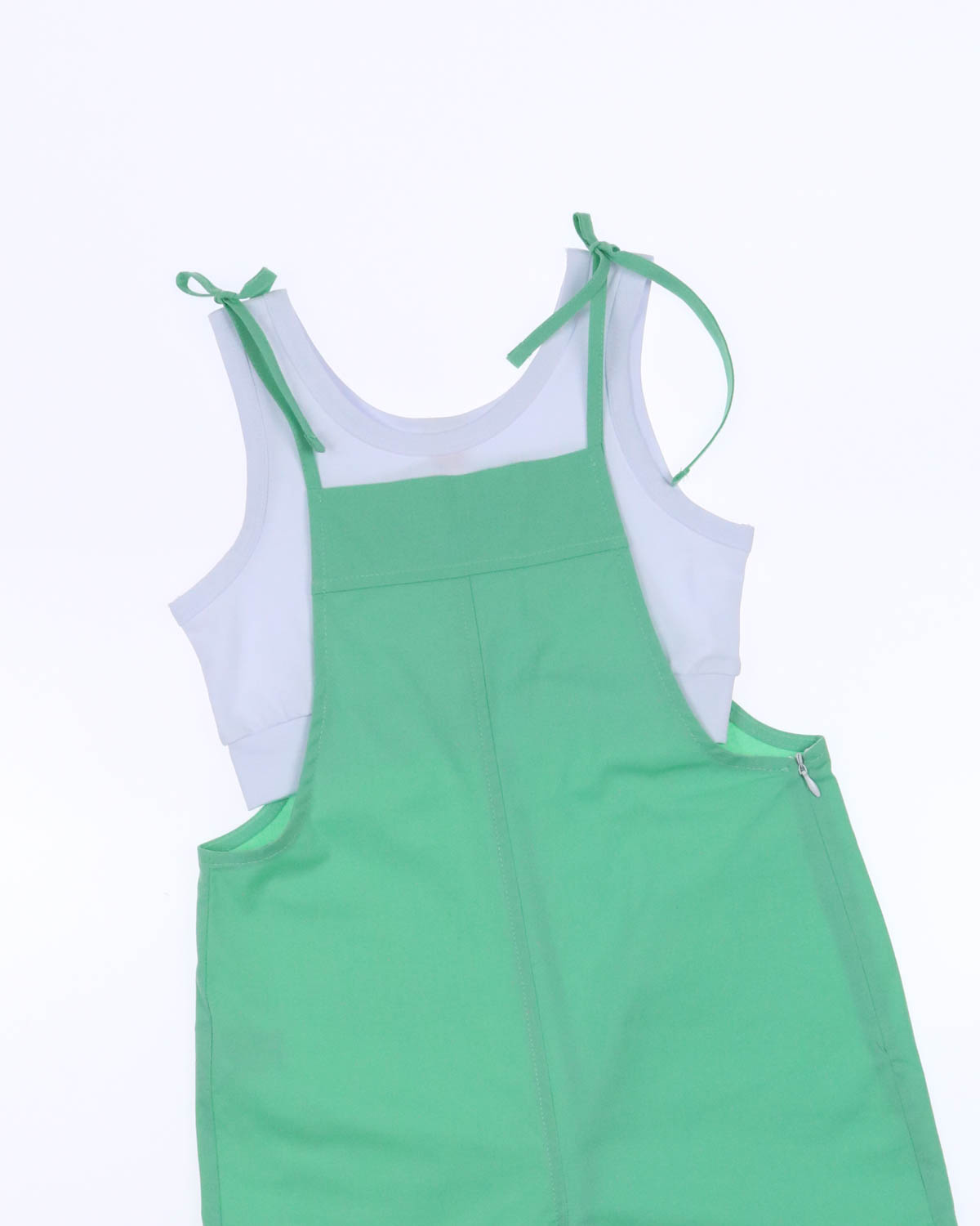 Оригинальный хлопковый комбинезон Dmb на тонких бретелях. Комплект дополняет трикотажный, белый кроп-топ с широкими лямками.