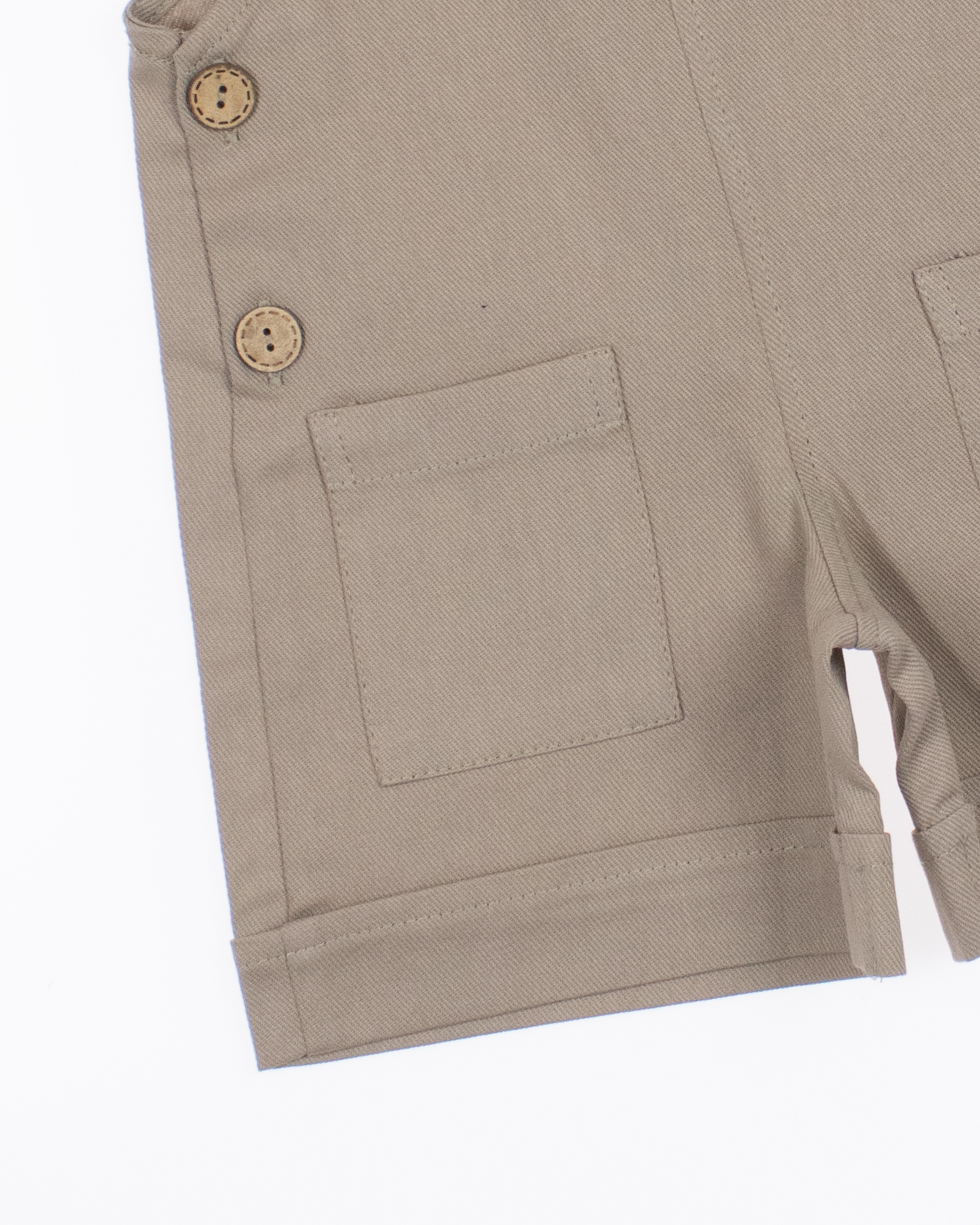 Комбинезон выполнен из хлопкового денима в пастельных тонах, спереди два накладных кармана, лямки пристегиваются на пуговицы, низ шорт оформлен отворотами. Детский джинсовый комбинезон для девочки оптом с доставкой по России в интернет-магазине Tamriko.