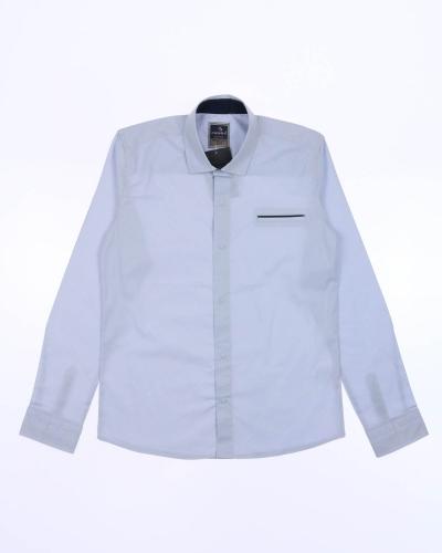 Рубашка для мальчиков прямого кроя с длинными рукавами и классическим отложным воротничком.  Модель застегивается на кнопки и украшена декоративным карманом на груди.