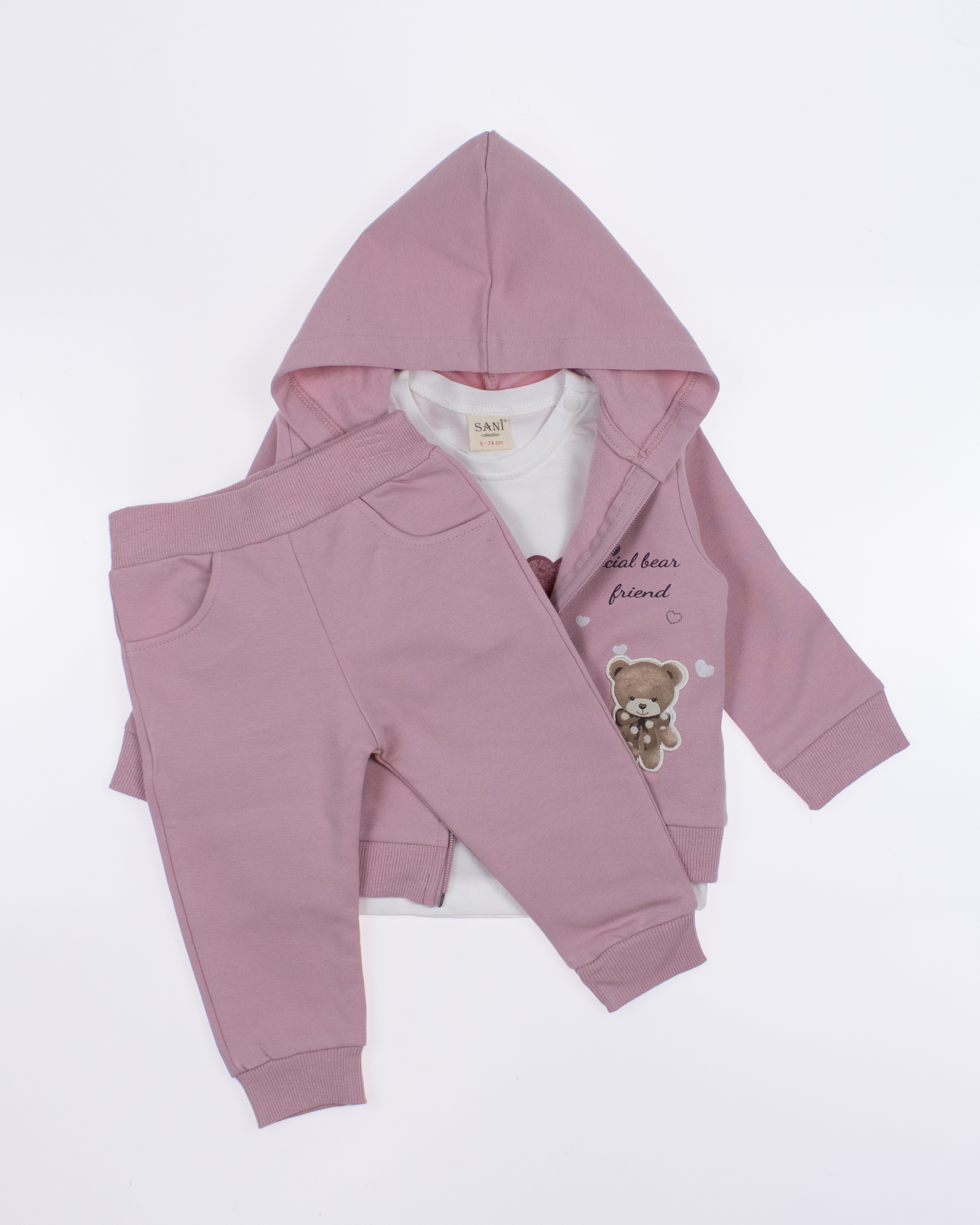 Теплый спортивный ясельный костюм оптом— это идеальный выбор для маленькой модницы. Он состоит из трех стильных предметов, которые обеспечивают как комфорт, так и опрятный внешний вид. Костюм выполнен из качественного трикотажа с начесом.