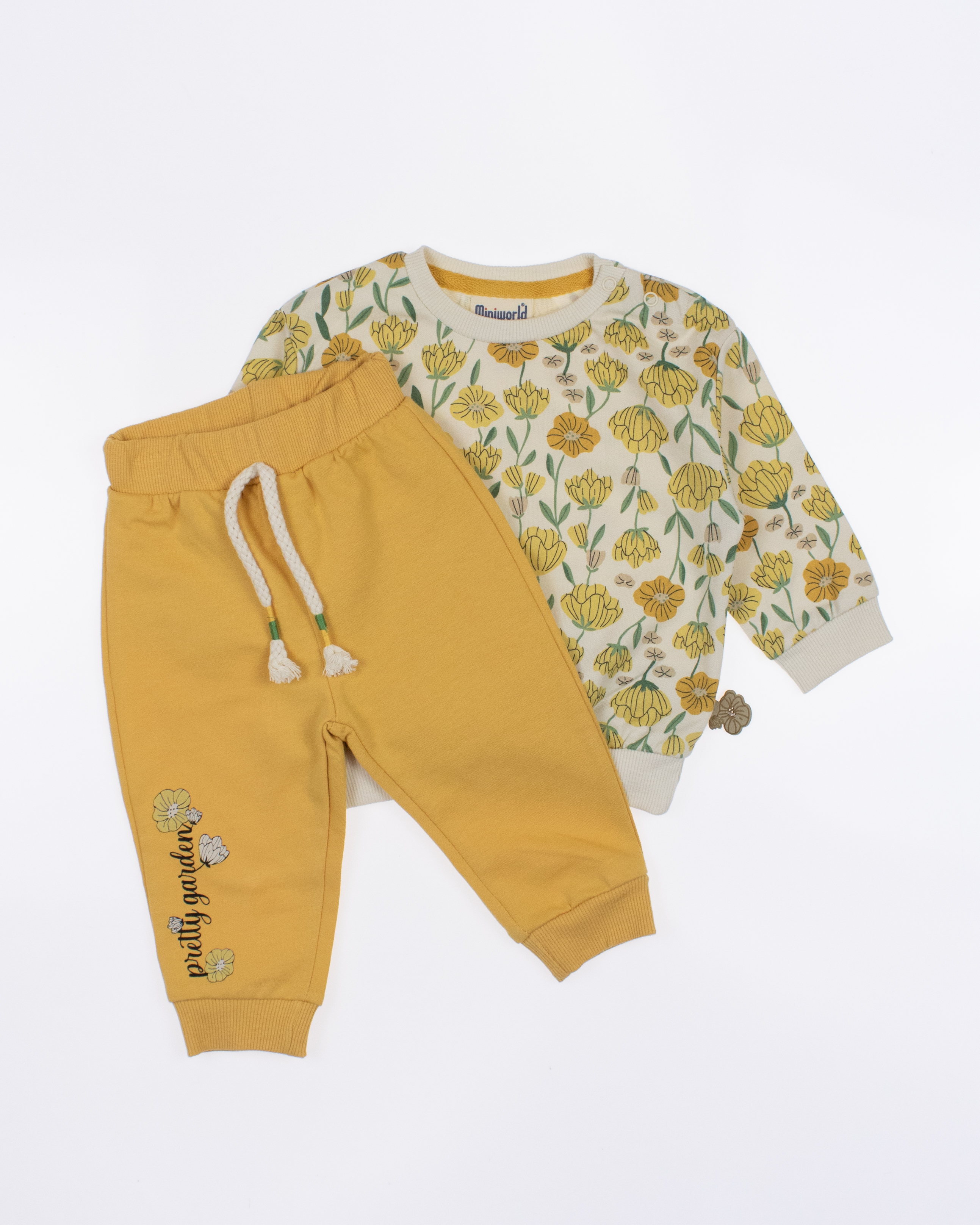 Мы предлагаем оптовые продажи детской одежды производства Турция. Хлопковый костюм  MINIWORLD выполнен из 100% хлопка, что гарантирует комфорт и безопасность для самых маленьких детей. Свитшот имеет удобную застежку-кнопки на плече, что облегчит процесс надевания и снятия одежды. Штанишки с мягкими манжетами на эластичном поясе идеально подходят для ношения с подгузником, обеспечивая свободу движений и комфорт. Детский милый принт на костюме поможет развить фантазию и воображение ребенка, делая его образ ярким и запоминающимся. Костюм MINIWORLD - отличный выбор для маленьких модников и их заботливых родителей. Не упустите возможность приобрести этот уникальный товар оптом по выгодной цене!