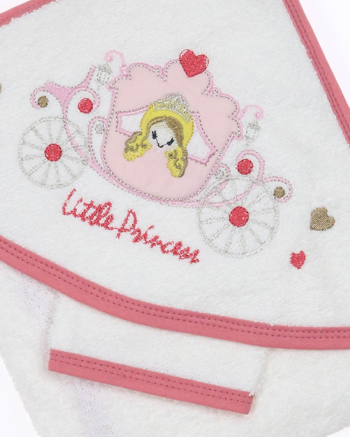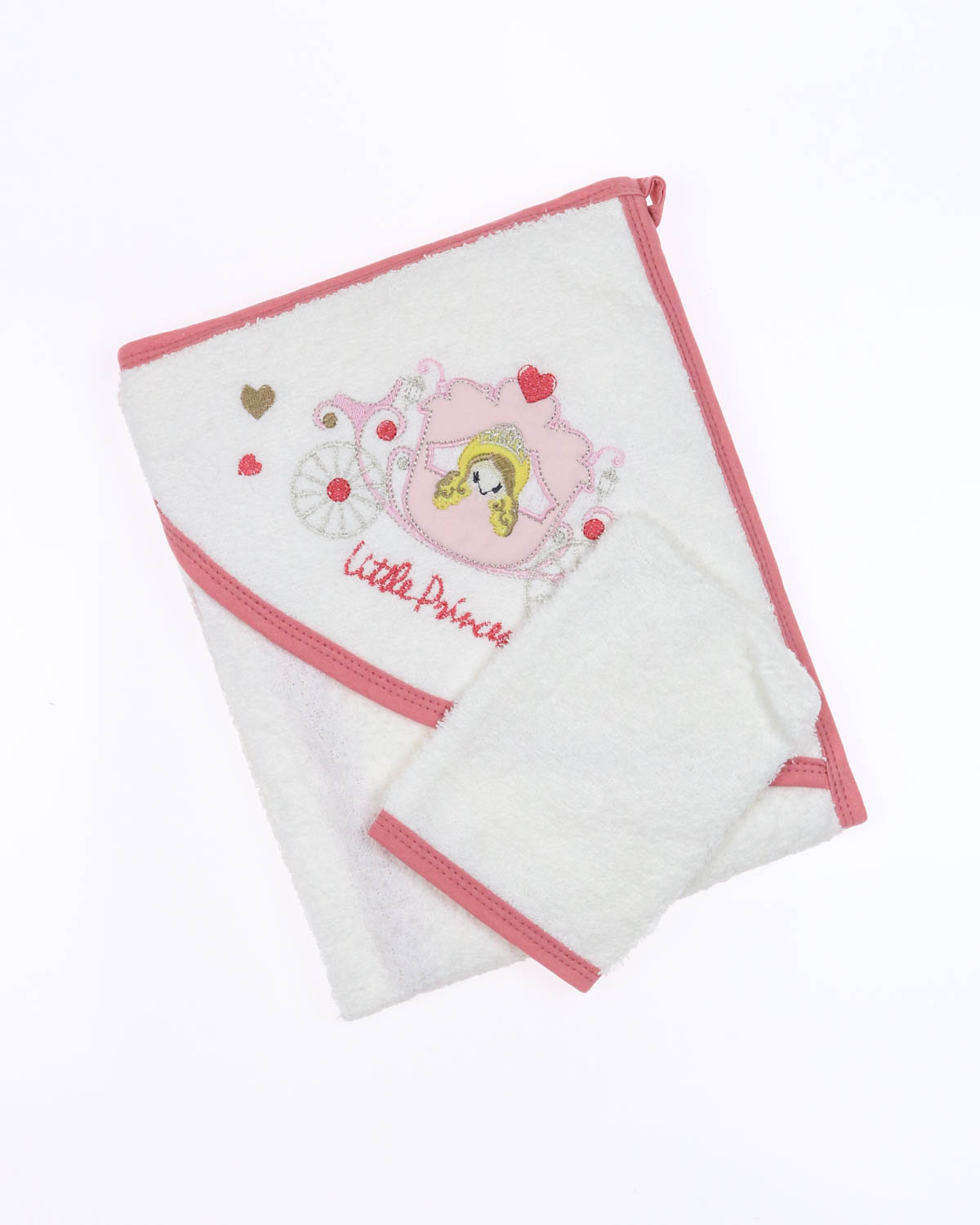 Полотенце с капюшоном и рукавица,  позволяет вытирать ребенка после купания так, чтобы его головка всегда оставалась в тепле. Благодаря петельке -   детское полотенце с капюшоном легко повесить сушиться, а варежкой можно вытереть ребёнка после кормления, а также утром после крепкого сна.  Детское полотенце из махровой ткани приятное на ощупь, отлично впитывает влагу и быстро сохнет. Капюшон декорирован милейшей аппликацией и вышивкой. Края детского полотенца обработаны хлопковой трикотажной окантовкой.