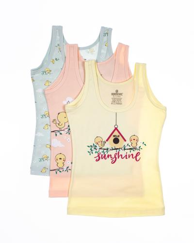 Лямочки мягко облегают плечи, фиксируют изделие в едином положении на протяжении дня, из-за чего одежда не задирается, не сползает, не перекручивается. Силуэт слегка прилегает к телу, из-за чего белье носится и полными, и худенькими девочками.. Постельный цвет маечки приятно смотрится, а принт на переднем полотне добавляет образу свежести, аккуратности и нежности. Детская одежда носится как ночнушка, нижнее белье или как белье для повседневной носки дома, в школу.