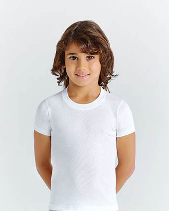 Трикотажная  однотонная детская футболка для мальчиков и девочек. Модель классического кроя, прямая, средней длины. Круглую горловину обрамляет широкая трикотажная резинка, а по краю рукавов и низу изделия проходит аккуратная декоративная строчка. Идеальна для детского сада, школы, на физкультуру и как повседневный вариант для детей и подростков. Сшита из качественного натурального хлопка. Очень мягкая и удобная.
